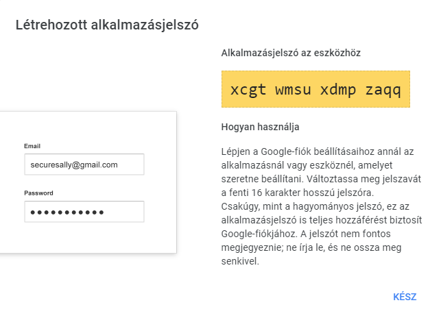 Alkalmazásjelszó generálására a következő linken van lehetőség: https://security.google.com/settings/security/apppasswords