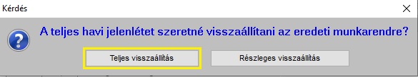 Az "Eredeti munkarend" gombra klikkelve a megjelenő kérdés esetében a "Teljes visszaállítás"-t szükséges választani.