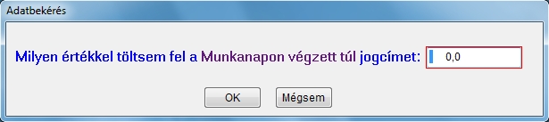 A jogcím kiválasztása után bekéri, hogy milyen értékkel töltse fel a jogcímet. Itt megadhatjuk az értéket amellyel az adott dolgozónál mindig feltölti az adott jogcímet a bérszámfejtés során.