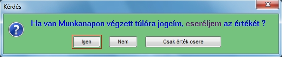 2. Nem: ne cserélje le az értékét ha van ilyen jogcím: A kiválasztott jogcímet minden dolgozó jogcímtáblájába felveszi a megadott értékkel a program, de ha már eleve szerepel ez a jogcím az adott dolgozónál, akkor ne változtassa meg annak az értékét.