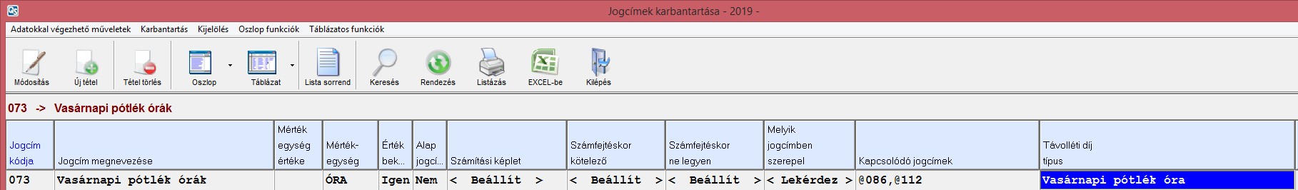 FONTOS! Megjegyzés: A Jogcímtörzs karbantartása Távolléti díj típus oszlopában láthatjuk (eléréséhez a jobbra nyílat kell megnyomni, míg meg nem jelenik), hogy a távolléti díj számításánál pontosan mely jogcímek vannak figyelembe véve. Ha Ön azt szeretné, hogy valamelyik jogcím beleszámítson, vagy ne számítson bele, akkor az adott jogcím sorában ennek a mezőnek az értékén nyomjon Entert és a feljövő Típus lista ablakban válassza ki az Önnek megfelelő távolléti díj típust.