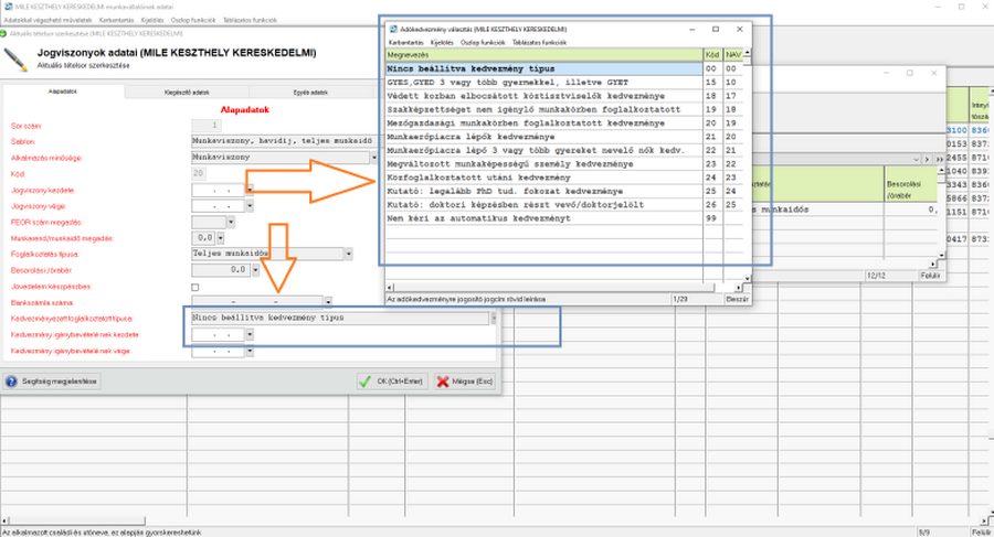 Dolgozók/Jogviszonyok/Módosítás/Alapadatok fül