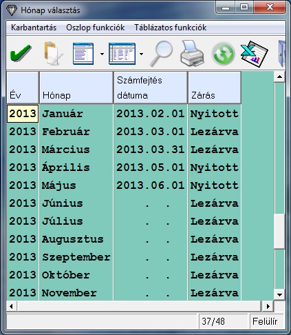 A menüpont indítása után először kiválasztjuk a hónapot. (A jelenlét lezárt hónap kiválasztása esetén nem szerkeszthető.)