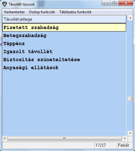 Maxbér -> Karbantartások -> Távollétek felvitele
