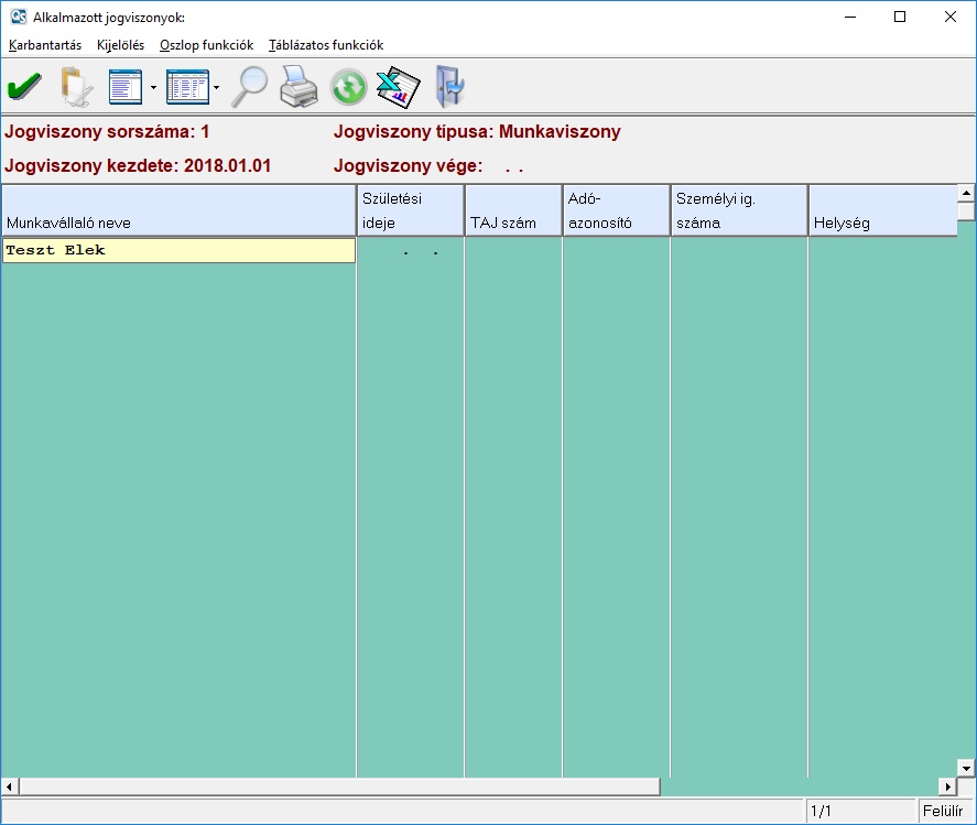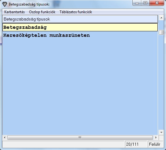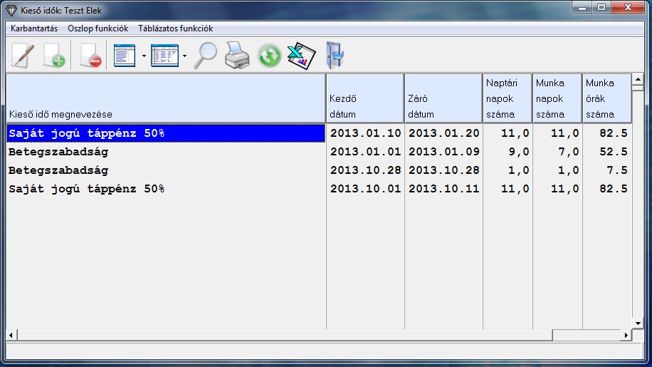 Az alkalmazott kiválasztása után, egy táblázatban jelennek meg az alkalmazott aktuális évre rögzített kieső idői.