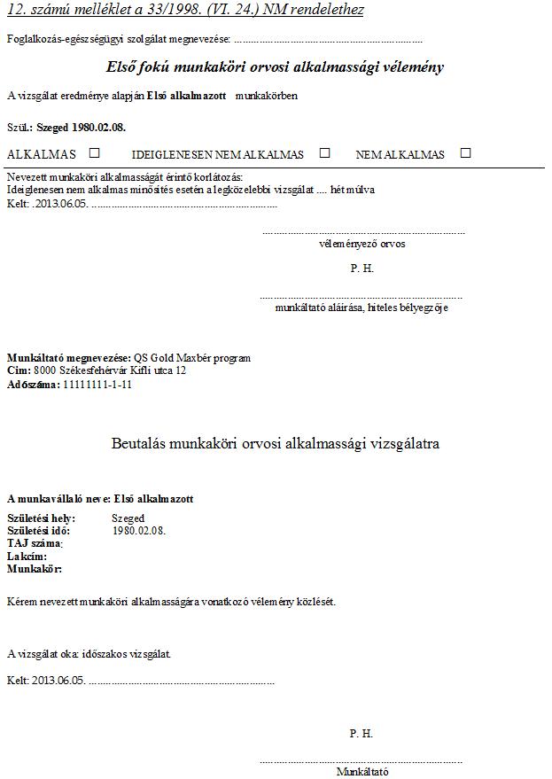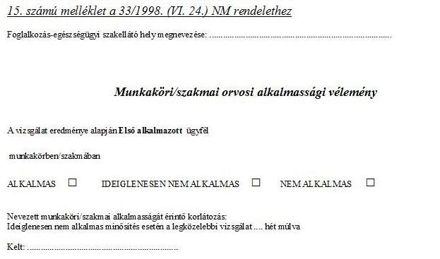 Nyomtatványok/Nyilatkozatok, igazolások/Orvosi alkalmassági vizsgálat