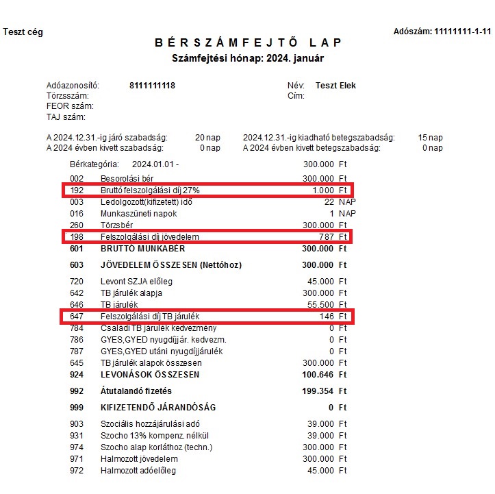 A dolgozó a nettó felszolgálási díj 10%-át kapja meg, és ez után fizet 18,5% TB járulékot a cég.