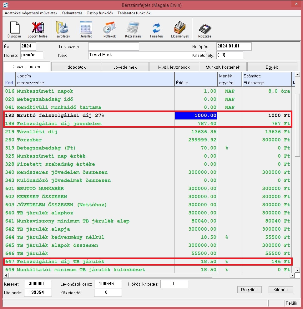 Arra is van lehetőség, hogy a számfejtés során adja hozzá a fent említett jogcímeket, szintén a + gomb segítségével.