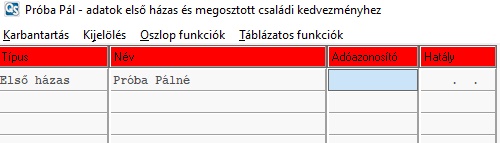 Az első házasok kedvezményére és a megosztott családi kedvezményre vonatkozó plusz adatok (házastárs, illetve másik fél adóazonosítója és neve) valamint az Első házasok kedvezményének a felvitele a következő menüpontokon keresztül lehetséges: