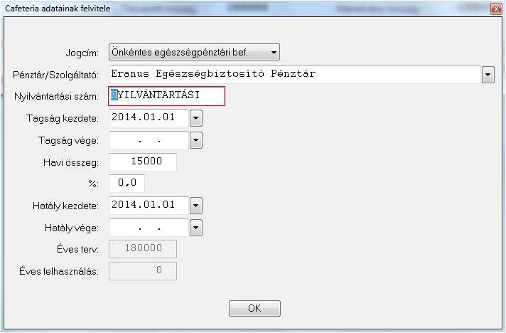 Az önkéntes pénztárakhoz tartozó bérszámfejtési jogcímeket és azok értékeit hozzá kell rendelni a dolgozókhoz. Ezt a Törzsadatok karbantartásában tehetjük meg, az adott dolgozó egyedi jogcímei között.