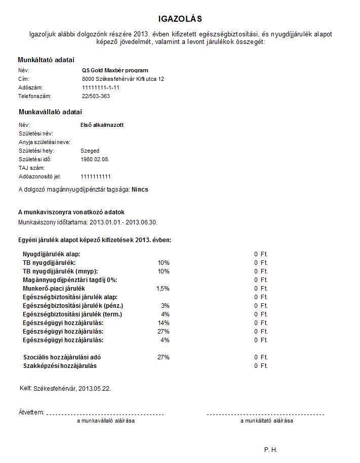 Nyomtatványok / Kilépők nyomtatványai / Igazolás befizetett járulékokról menüpont alatt érik el a kilépő dolgozók ezen nyilatkozatát. A helyes működéséhez a kilépő dolgozójuk esetén, be kell állítani a munkavállalónál a Kilépés dátumát. Ezt a Törzsadatok/Személyi adatok karbantartása menüpontban tehetik meg.