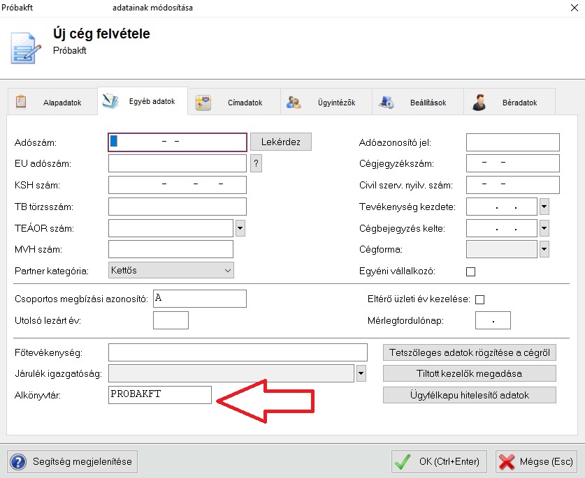 FONTOS! Az alkönyvtár nevet automatikusan adja a program a cég név első 8 karakteréből, ezeket a mappákat ne töröljék, mert a programunk itt tárolja az adott céghez felvitt adatokat és beállításokat. Ezek a mappák nem törlődnek a könyvelt cég törlése után sem, ez által a törölt cég bármikor visszaállítható.