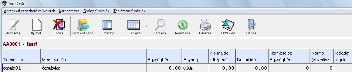 A teljesítménybérben dolgozó embereknek számfejthető a termékkódok mellett időbér is teljesítményként felvíve. Ehhez szükséges a Törzsadatok/Termékkódok karbantartása menüpontban egy "ORA" egységű termékkódot felvennie [+] gomb megnyomásával.