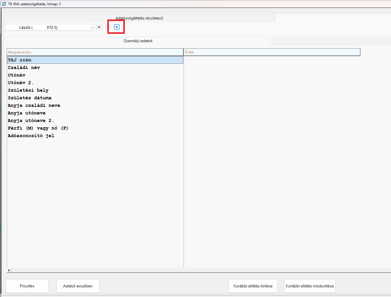 A Személyi részletező/Személyi adatok fülön, a kigyűjtött adatokhoz manuálisan a "+" gombbal lehet új dolgozót hozzáadni: