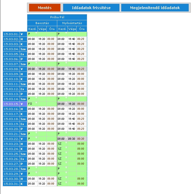 A betöltés után az OLM Munkaidőben már vezethetjük az adatokat. Erről bővebben itt olvashat: OLM Munkaidő tudásbázis