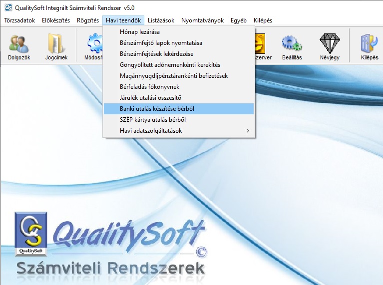 Ezután a banki utalás készítése bérből nevű menüpontban készül el az utalási fájl.