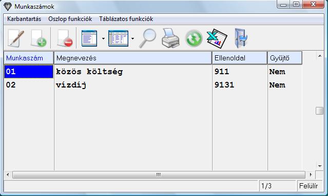 A Karbantartás/Társasházi költség fajták karbantartása menüpont alatt tudja felvenni az egyes befizetési kötelezettségeket (pl. közös költség, vízdíj stb...) az automatikus előírások könyveléséhez. A költség kódja oszlopban egy minél rövidebb számmal vegye fel az egyes sorokat és a megnevezés oszlopban fejtse ki szövegesen, hogy milyen befizetésről van szó.