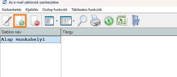 Az itt megjelenő menüpontban módosíthatjuk, törölhetjük vagy létre is hozhatunk új email sablonokat. Az sablon létrehozásához az ikonsor második gombját kell megnyitni.