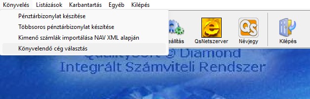 Több cég kezelésére alkalmas programunkban van lehetőség menet közbeni cég váltásra is. Ez elősegíti a munka folyamat gyorsaságát. A végre hajtásához nem kell kilépni a programból elég a Könyvelés / Könyvelendő cég választása menüpontot elindítani. A menüpont elindítása után egy lista ugrik fel ahol szabadon kiválaszthatjuk az általunk kívánt céget melybe adatot szeretnénk felvinni.