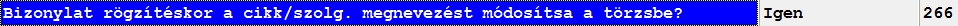 Ehhez a 266-os rendszer paramétert kell bekapcsolnunk. (Bizonylat rögzítéskor a cikk/szolg. Megnevezést módosítsa a törzsben?)