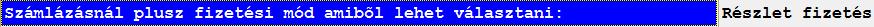 Megjegyzés: Régebben a rendszerparaméterek között lehetett csak az alap fizetési módon túl egy sajátot hozzáadni. (Kilépés / gyors menü / Rendszer beállítási táblázat). Az 50-es rendszer paraméterhez írhattunk be egy kívánt fizetési módot. A fizetési módok karbantartásával azonban elavulttá vált ez a lehetőség. Az korszerűbb megoldásra való áttérésnél lefutott egy konverziós eljárás. Ez létrehozott ez alapján egy egyedi fizetési módot, ha volt olyan számla az adott évben, ami ezzel a fizetési móddal lett kiállítva. A továbbiakban a rendszer figyelmen kívül hagyja az ide beállított értéket. Ez a paraméter így néz ki: