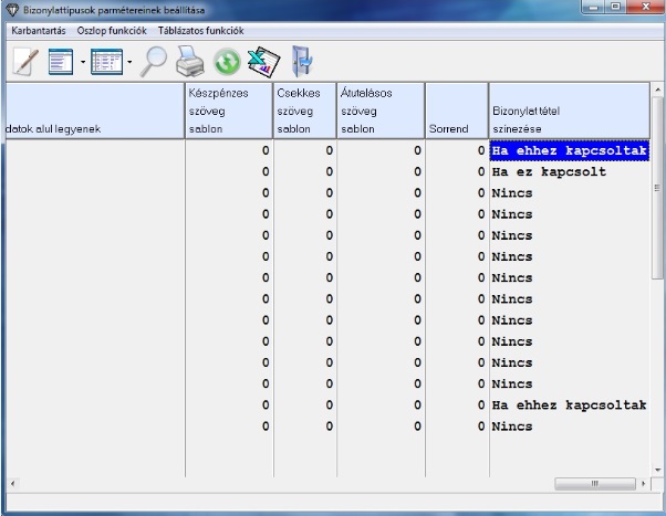 A Bizonylattípusok beállítása menüpontban lehetőségünk van beállítani, hogy az egyes típusok elkülönítve/más színnel jelenjenek meg a bizonylat műveletek listát lekérve (bizonyos feltételek szerint).