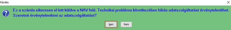 Ha a számla státusza "Elfogadva", akkor a lenti ablak jelenik meg, az "Igen"gombra klikkelve folytatható a folyamat.
