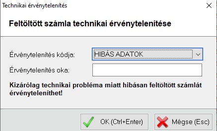 A következő ablakban szükséges megadni az érvénytelenítés okát, például téves adatszolgáltatás.