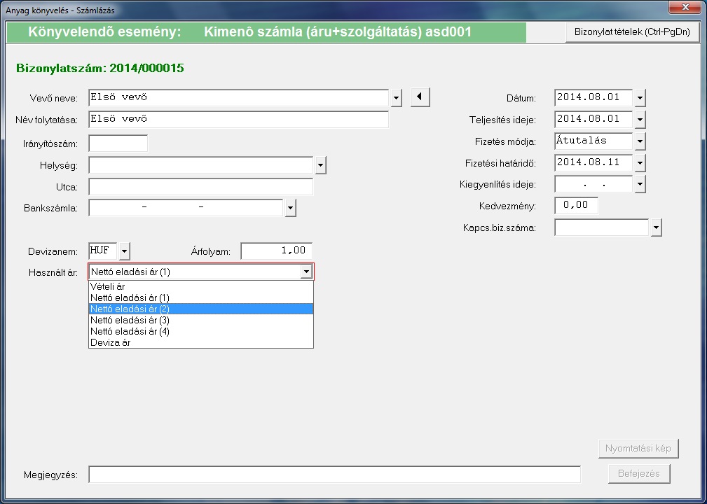 A különböző bizonylat típusokhoz beállítható, hogy bizonylat kiállításakor az árucikkek kiválasztása után melyik árkategóriához tartozó ár jelenjen meg az adott tételen. Amennyiben több árkategóriát szeretne használni, az is beállítható, hogy a bizonylatok kiállításakor az ablakban kiválaszthassa az árkategóriát a tételek felvétele előtt. Igény esetén, ezeknek a funkcióknak az aktiválásához, kérjük lépjen kapcsolatba ügyfélszolgálatunkkal!