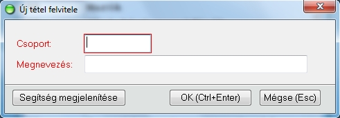 Itt meg kell adni a csoport kódját és megnevezését, más teendőnk nincs.