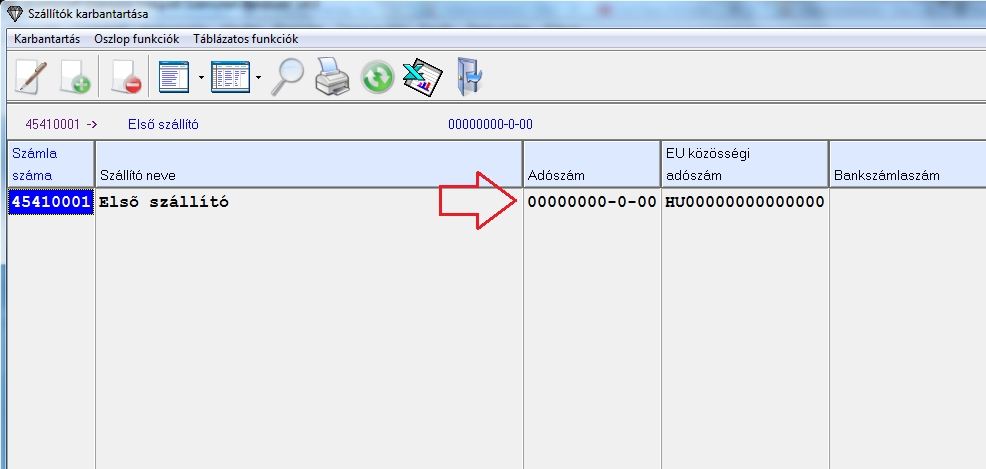 A vevő/szállító adószámát a program automatikusan átveszi a könyvelt tételhez, mivel ezt jelezni kell az ÁFA bevallásban. Ehhez a vevők/szállítók karbantartásánál a megfelelő vevők/szállítók adószámait ki kell tölteni, hogy a program feltudja és jól tudja kezelni a mezőgazdasági fordított ÁFA-t.