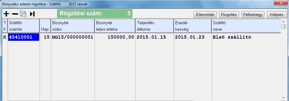 Miután ezeket a beállításokat elvégeztük elkezdhetjük a könyvelést. Ami után kiválasztjuk a menüpontot akkor előjön egy ablak, hogy melyik hónapra szeretnénk könyvelni. Utána megjelenik a könyvelési ablak. Alapesetben felkínálódik, hogy melyik vevőre/szállítóra szeretnénk könyvelni, ezt a rendszer a könyvelési alapadatokban megadott számla alapján tölti fel. Ha van deviza modulunk, a programban külön külföldi partnereket is fel tudunk vinni, és ekkor rá is kérdez a program, hogy a devizás partnerre szeretnénk könyvelni, vagy sem. (A devizás könyvelés specialitásairól részletesen itt olvashat) A könyvelési adatok megadása egy táblázatban történik, a felvitt adat megadása után a program automatikusan ugrik a következő oszlopban található cellára. A cellák között a nyíl gombok segítségével vagy egérrel navigálhatunk ha ez valamiért szükséges. (A táblázatok használatának részletes univerzális leírásáról bővebben itt olvashat)