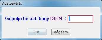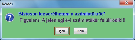 A figyelmeztető üzenetek után még utolsó ellenőrzésként egy ablak jelenik meg amelyben az IGEN szót kell beírni és ez után a program végre hajtja a számlatükör átemelését az előző évből.