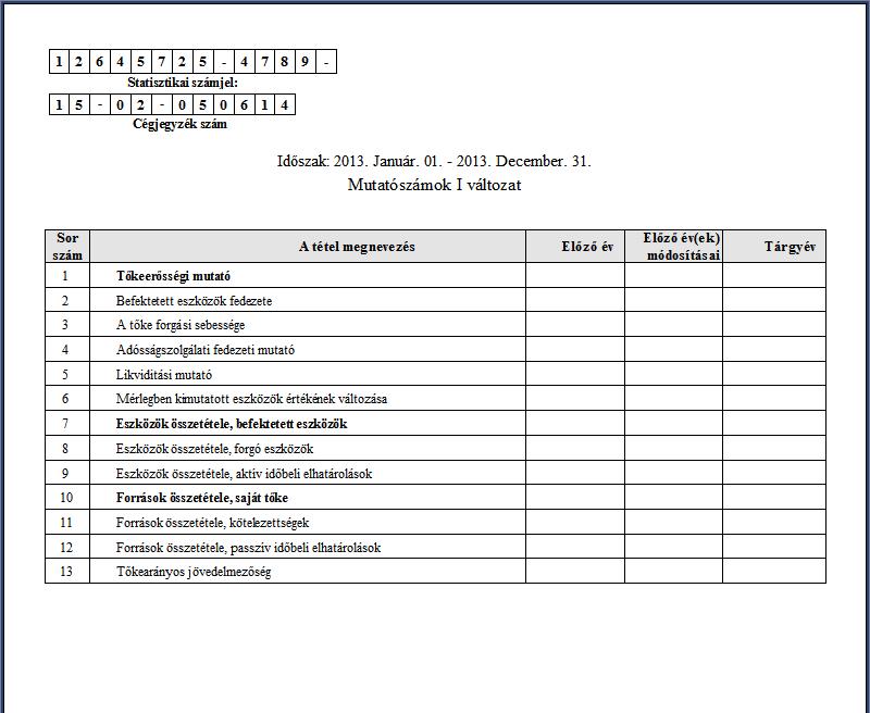 Programunkban elkészíthetőek a kiegészítő melléklethez szükséges mutatószámok. Ehhez a Zárás-nyitás / Mutatószámok / Mutatószámok I menüpontot kell lefuttatni.