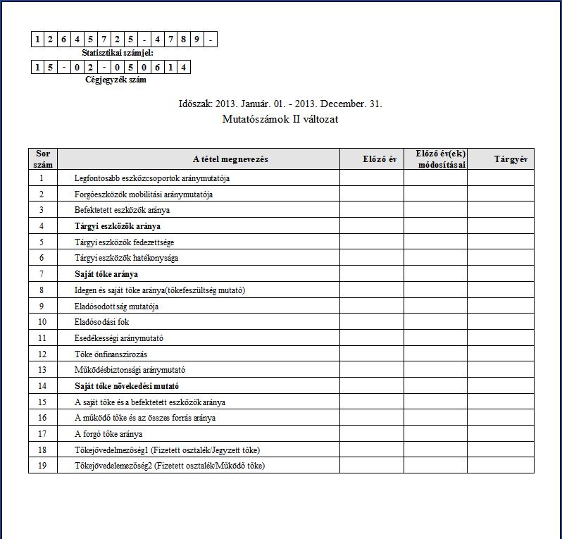 Programunkban elkészíthetőek a kiegészítő melléklethez szükséges mutatószámok. Ehhez a Zárás-nyitás / Mutatószámok / Mutatószámok II menüpontot kell lefuttatni.