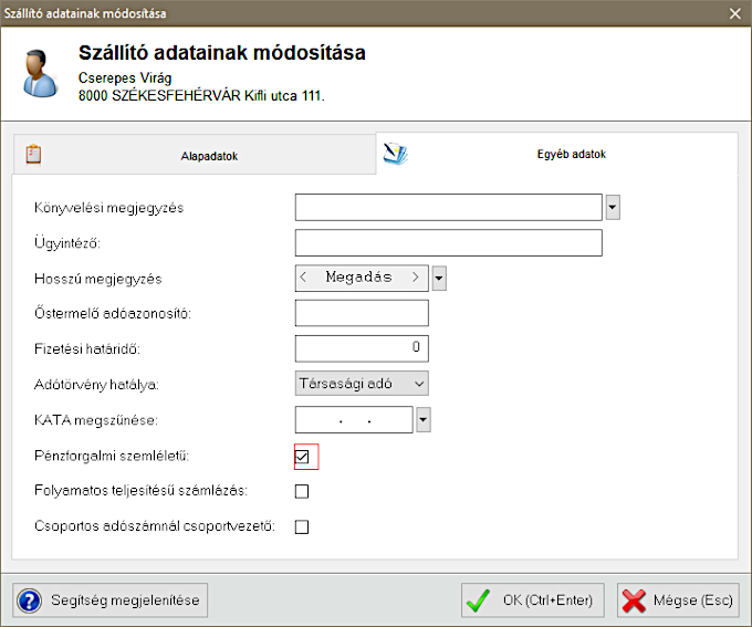 Lehetőségünk van beállítani és kezelni a pénzforgalmi áfa elszámolású szállító partnereket programunkban.