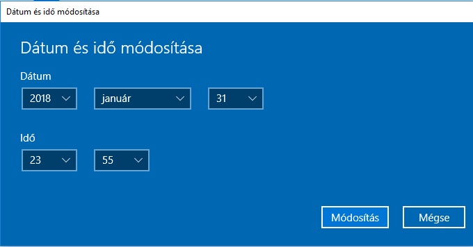 A Tálca jobb alsó sarkában láthatjuk az időt, erre kattintva a jobb egérgombbal (ez nagyon fontos mert a bal egérgom hatására a naptárnézet jön be) itt egy felugró ablakban válassza ki a dátum idő beállítása menüt és írja át a dátumot.