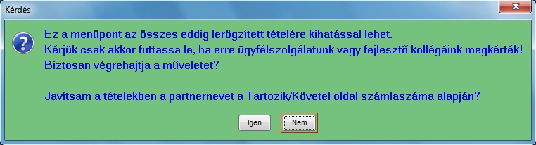 Programunk képes tartozik vagy követel oldal alapján javítani a könyvelt tételek partner nevét.