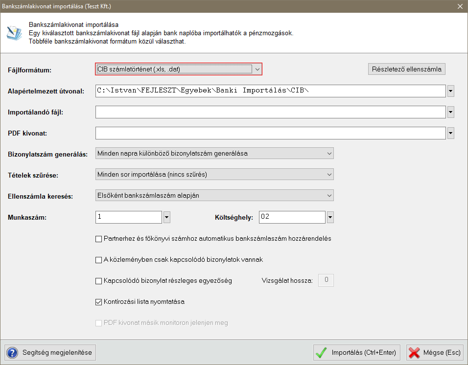 Fájlformátum: Az itt kiválasztott banki fájl formátumnak megfelelő állományt kell majd választani. Ennek a formátumnak megfelelően fogja majd értelmezni a rendszer az importálandó állományt.
