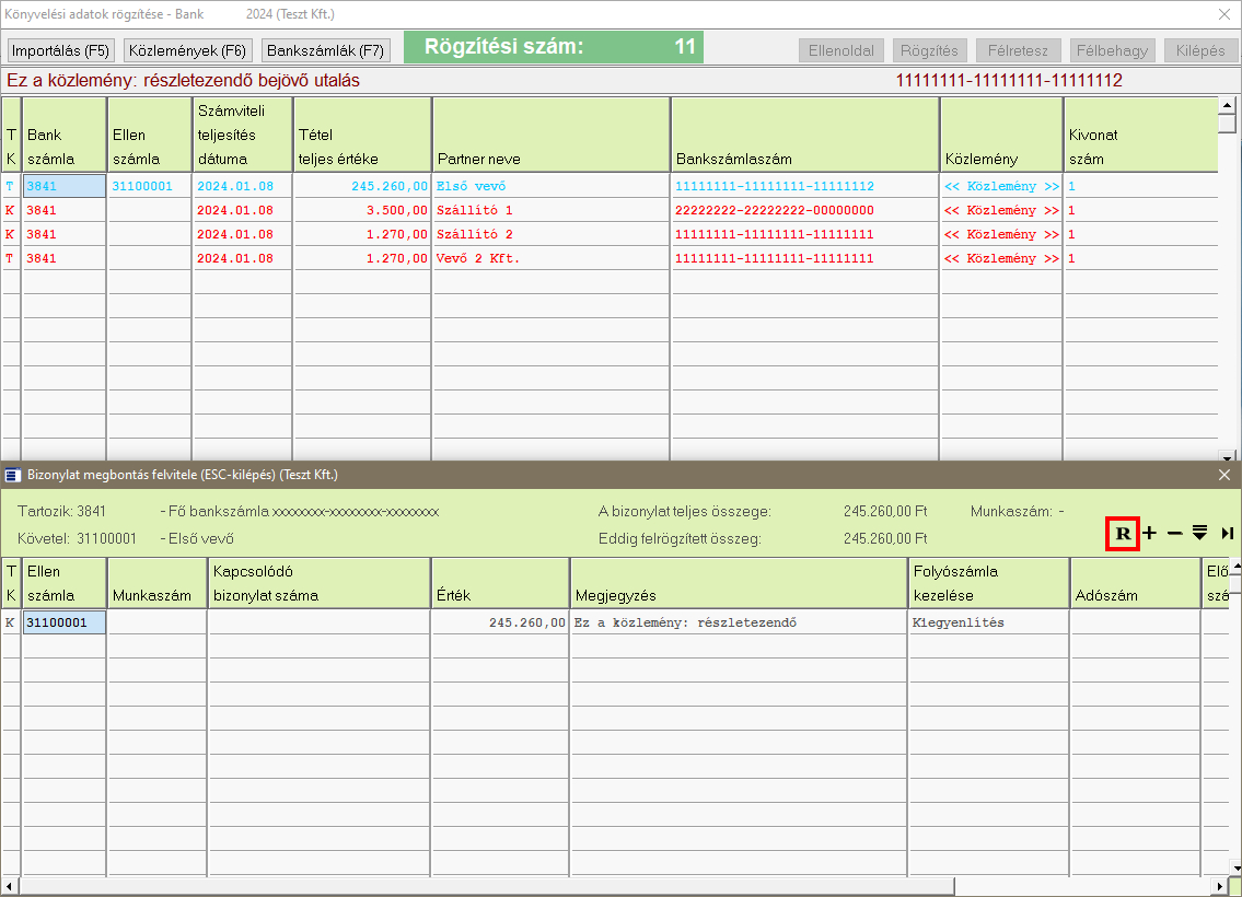 A "Könyvelés -> Banki import állomány beolvasása" menüpontban beemelhető sokféle bank számlakivonata vagy számlatörténete. Egy ilyen fájl importálása során egy adott hitelkártyához tartozó sor (amelyhez egy részletező állomány tartozik) egy soron (egy fej alatt) jelenik meg. Ennek az egy bevételnek vagy kiadásnak a részletezéséhez jelent segítséget a Hitelkártya részletező CSV állomány importálása. Ezt a funkciót az alábontásokat tartalmazó táblázat jobb felső sarkában pirossal bekeretezett "R" betűs ikonra kattintva a megjelenő listában a "Hitelkártya részletező" lehetőséget választva lehet elindítani.