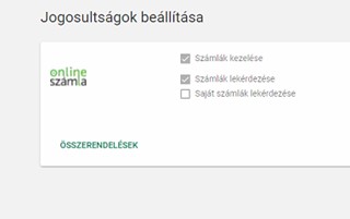 A technikai felhasználó jogosultságainál szükséges bepipálni a "Számlák kezelése" "Számlák lekérdezése" jelölőnégyzeteket.
