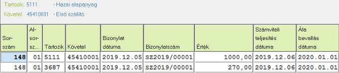 Ezután a könyvelt évben állva a tétel így fog kinézni: