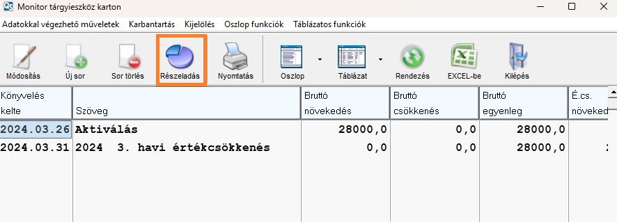 A tárgyi eszközök között válassza ki a kívánt tételt, majd dupla kattintással nyissa meg a „Karton" menüpontot.
