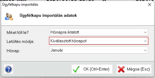 A QS programban az iktatásba belépve az ’Ellenőrzés’ gombbal indíthatjuk el a számlák letöltését. A kattintás után egy ablakot fogunk látni ahol megadhatjuk a letöltés paramétereit. A 'Miket tölt le?' mezőben alapértelmezetten az 'Összes iktatott' lehetőségen fog állni, ez azt jelenti, hogy minden elérhető számlát le fog tölteni. Ezt átválthatjuk a 'Hónapra iktatottra' is. Ennek hatására aktívvá válik a következő kettő legördülő menü is. A 'Letöltés módja' sorban azt adhatjuk meg, hogy ha a webes iktatóban lévő tételekhez rendeltünk hónapot (Hónap oszlop a webes felületen) akkor azok letöltését hogyan kezelje a program. Ha a 'Kiválasztott hónap' lehetőséget választjuk akkor a harmadik sorban megadott 'Hónap' mezőben adhatjuk meg melyik hónapot szeretnék lekérni és csak azokat a sorokat kapjuk meg, amelyekhez ez a hónap van beállítva. Ha a 'Csak üres hónapokat' választjuk ki, akkor azokat a sorokat tölthetjük le, ahol nincs hónap kiválasztva, helyette a 'Nincs kiválasztva' szerepel. Az utolsó opció a 'Kiválasztott és üres', ebben az esetben a harmadik sorban kiválasztott hónap és a 'Nincs kiválasztva' együttesen lesz letöltve.