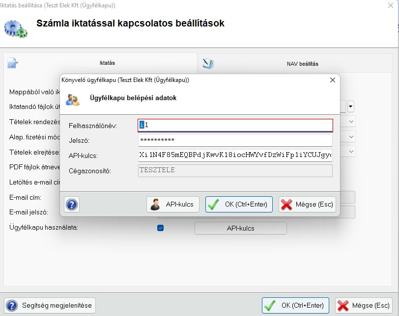 Fontos! A webes iktatónak és a programnak azonos évben kell állnia ahhoz, hogy az API-kulcs generálása sikeres legyen!