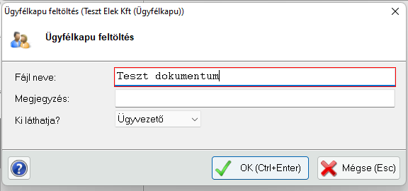 Azokban a programokban ahol megfelelően be van állítva az ügyfélkapu kapcsolat (2. pont), azokban a nyomtatások előtt megjelenő lila ablakban láthatóvá válik egy ’Feltöltés QS ügyfélkapura’ opció. Ezt választva egy ablakban be kell állítani, hogy a dokumentumot ki láthatja. Ettől függően fog feltöltődni a webes felületre. (Ügyvezetői vagy ügyintézői dokumentumok)