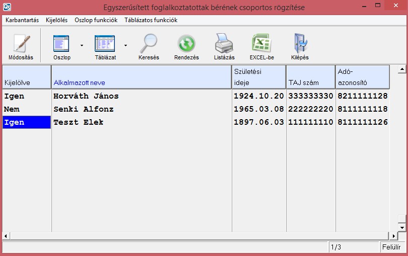 A táblázatból történő kilépéskor ellenőrző kérdés után megtörténik az adatok rögzítése ugyanúgy, mint ha egyenként vittük volna fel a dolgozókhoz azokat.
