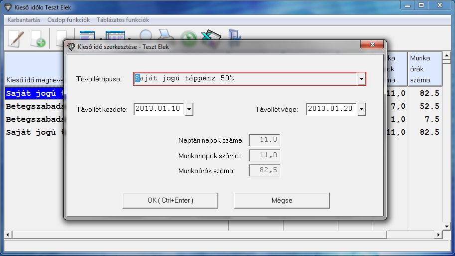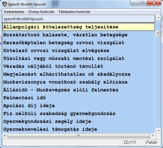 Az igazolt távollétek számfejtésére vonatkozó információkat ld. Igazolt távollét elszámolása.
