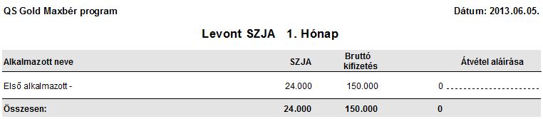 A kifizetési jegyzéken az alkalmazottak ABC sorrendben felsorolt adatai mellett megtalálható a kifizetendő járandósága, valamint az átvétel elismerésére szolgáló aláírás. Azon listák végén ahol be van állítva a címlet kérés az azon szereplő összegek szerepelnek kicímletezve, melynek alapján szervezeti egységre el lehet osztani a bankból kihozott pénzt. Utoljára egy kifizetés összesítő lap is kinyomtatásra kerül, amely az összes bért tartalmazza, és összesített címletezéssel ki is nyomtatja, melynek alapján történhet a banki pénz felvétel. Ezen lista sorainak további beállítására egyedileg is van lehetőség. A Listák paraméterezése kategórián belül található cikknél olvashat róla részletesen.