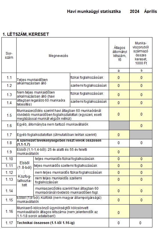 A Havi teendők/Havi adatszolgáltatások/Havi munkaügyi statisztika menüpontban szintén lekérhető egy másik munkaügyi statisztika. (2. kép)